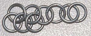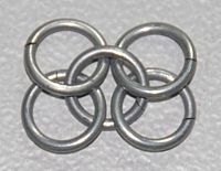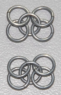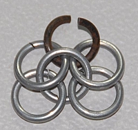 | Schritt 1: | Vier Ringe werden geschlossen und in einen geöffneten Ring eingehängt. Der offene Ring wird danach geschlossen. | ![]() |