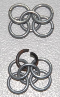 | Bei Kettenhauben, -beinlingen und Ärmeln von Kettenhemden kommt es schon mal vor, das eine neue Reihe mehr Ringe aufnehmen muß als in der alten vorhanden sind. Im Folgenden wird erklärt, wie soetwas gemacht wird. |