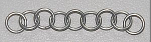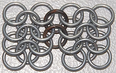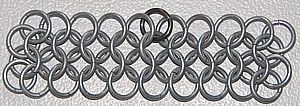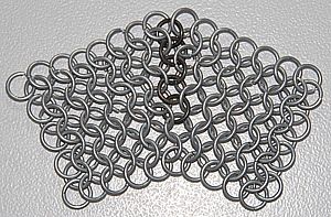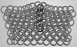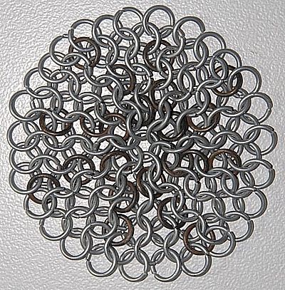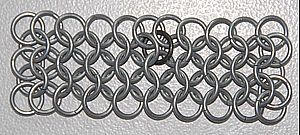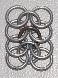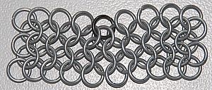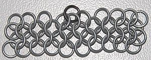 | Schritt 3: | Werden die Schritte 1 und 2 mehrmals wiederholt und dabei der Erweiterungsring immer an derselben Stelle eingesetzt, so sieht das Kettengeflecht in etwa so aus wie die Abbildung rechts. | |