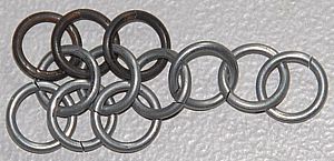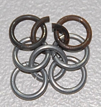 | Bei Kettenhauben, -beinlingen und Ärmeln von Kettenhemden kommt es auch schon mal vor, das eine neue Reihe weniger Ringe haben soll als in der alten vorhanden sind. Im Folgenden wird erklärt, wie soetwas gemacht wird. |